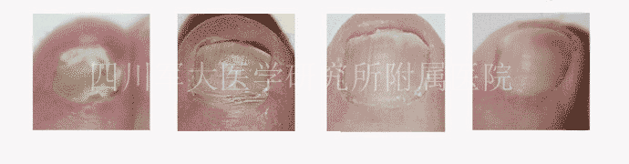 治疗后:后来经过慎重的选择考虑来到成都军大医院治疗,医生采用“中医渗透治疗”对其进行治疗,一个疗程后,病甲开始脱落,并长出新甲。