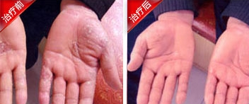 (图为,周先生手部湿疹治疗前后对比图)