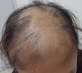 男性脱发,主要是前头与头顶部,前额的发际与鬓角往上移,前头与顶部的头发稀疏,变黄,变软,终使额顶部一片光秃或有些茸毛;女性脱发在头顶部,头发变成稀疏,但不会完全成片的脱落。