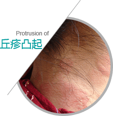 出现大小不等的小丘疹,抓破后可出血、结痂、脱屑,导致皮肤毛囊破坏,引起毛发脱落、断裂。